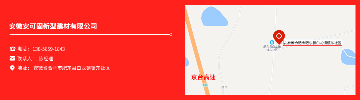 安徽安可固新型建材有限公司是一家集科研、生產(chǎn)、銷售與技術(shù)咨詢?yōu)橐惑w的特種建材企業(yè)。公司主營(yíng)產(chǎn)品:高強(qiáng)無(wú)收縮灌漿料,灌漿料,支座灌漿料,新橋規(guī)預(yù)應(yīng)力孔道壓漿料,道釘錨固劑,鋼結(jié)構(gòu)膠,水泥路面修補(bǔ)料,環(huán)氧樹脂膠泥,環(huán)氧灌漿料,瓷磚粘結(jié)劑,防水涂料、堵漏,混凝土添加劑及砂漿母料等產(chǎn)品。 安徽安可固新型建材有限公司產(chǎn)品廣泛應(yīng)用于鐵路、電力、化工、結(jié)構(gòu)加固、道路搶修、水庫(kù)堤壩、工業(yè)耐磨地坪、防腐阻銹等領(lǐng)域。...